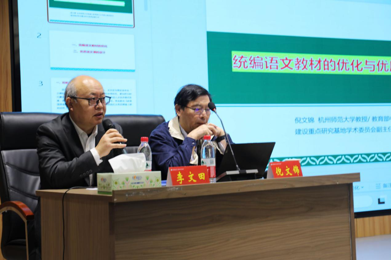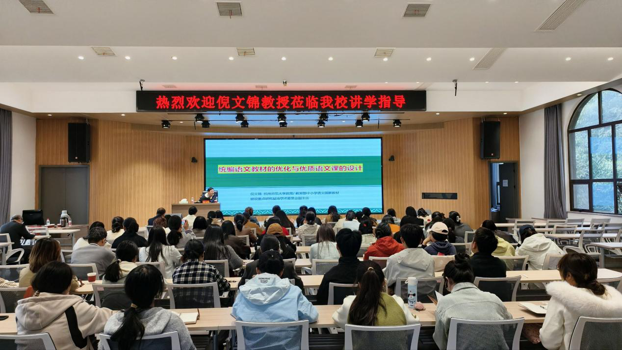 10月16日上午,应太阳成集团tyc33455邀请,杭州师范大学教授、教育部中小学语文国家教材建设重点研究基地学术委员会副主任倪文锦教授在我校大学生活动中心博雅讲堂作了题为《统编语文教材的优化与优质语文课的设计》专题报告。太阳成集团tyc33455院长李文田、副院长连亚飞、学院及“U-G-S”协同育人基地校部分教师、小学教育专业研究生与红色园丁实验班学生参加。报告会由李文田主持。