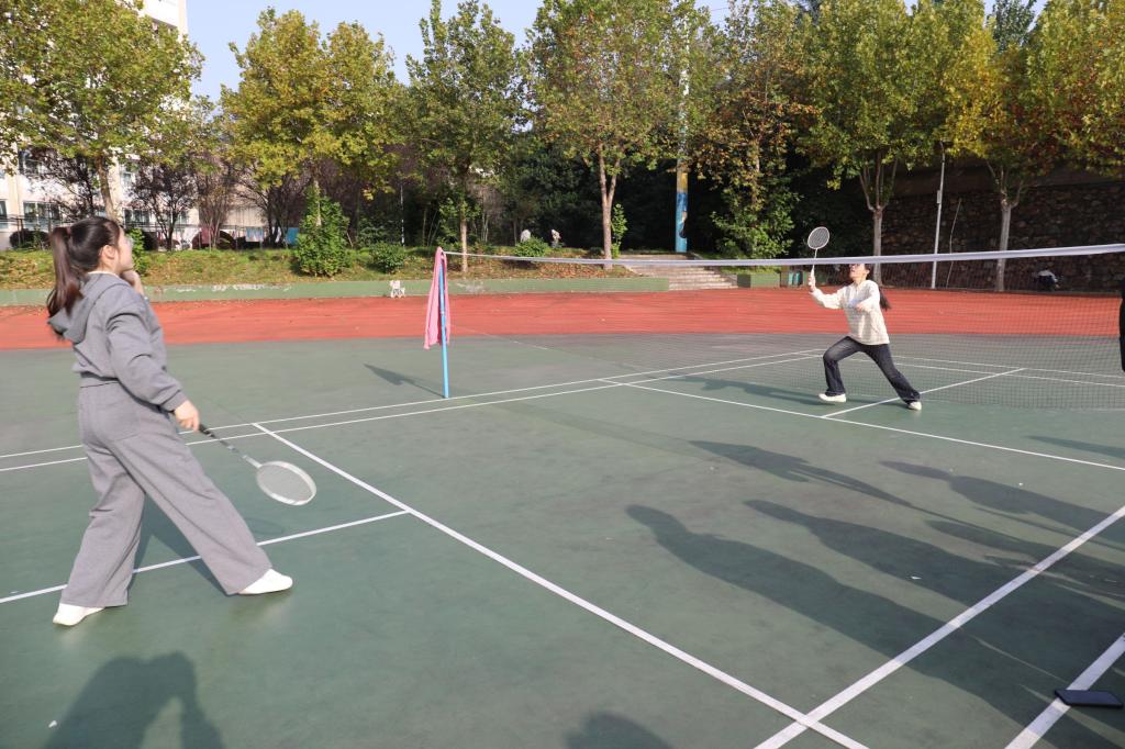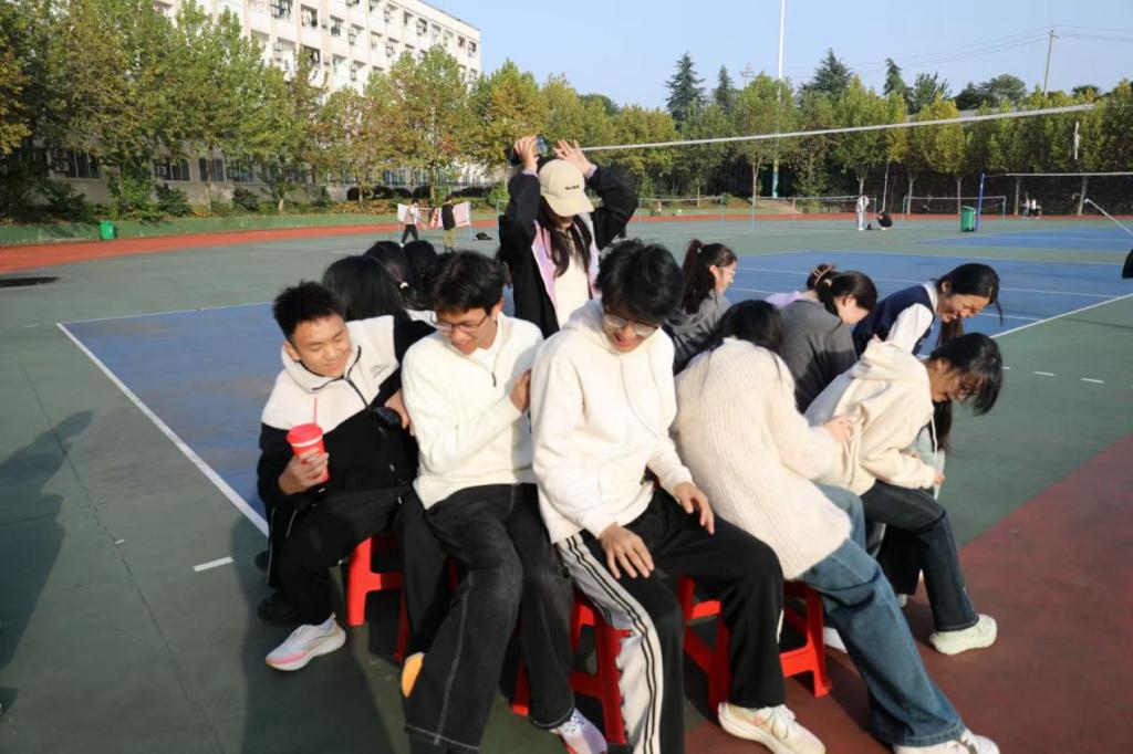 本次运动会设置了“羽毛球”“单人跳绳”“夹球跑”和“抢凳子”四个趣味项目。羽毛球赛场上,选手们精神专注,轻盈吊球与精彩扣杀接连不断;“夹球跑”项目中,队员们两两一组,背靠背夹紧篮球,默契协作、奋力冲向终点;抢凳子游戏更是将现场气氛推向高潮,伴随着欢快的音乐,大家围绕凳子紧张转圈,音乐戛然而止时的敏捷反应与趣味争夺,引来阵阵笑声与欢呼。整个活动现场气氛热烈,掌声、喝彩声不绝于耳。活动尾声,张希硕为获奖同学颁发奖品,全体师生合影留念,为本次运动会画上圆满句号。