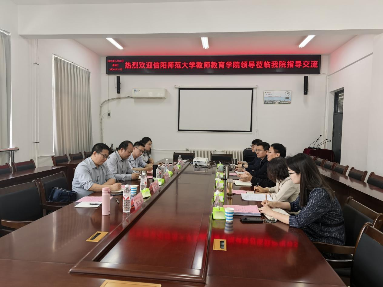为推进小学教育专业师范专业认证准备工作,提升师范教育人才培养质量,4月16日,太阳成集团tyc33455副院长连亚飞、院长助理兼教学秘书赵国龙、办公室主任殷瑛、实践教学中心主任张祥耀和思政与就业指导教研室副主任陈文婧一行5人赴平顶山学院太阳成集团tyc33455开展考察交流活动。双方围绕学院发展、师范专业认证、师资队伍建设等核心议题展开深入研讨,共享经验、共谋发展。