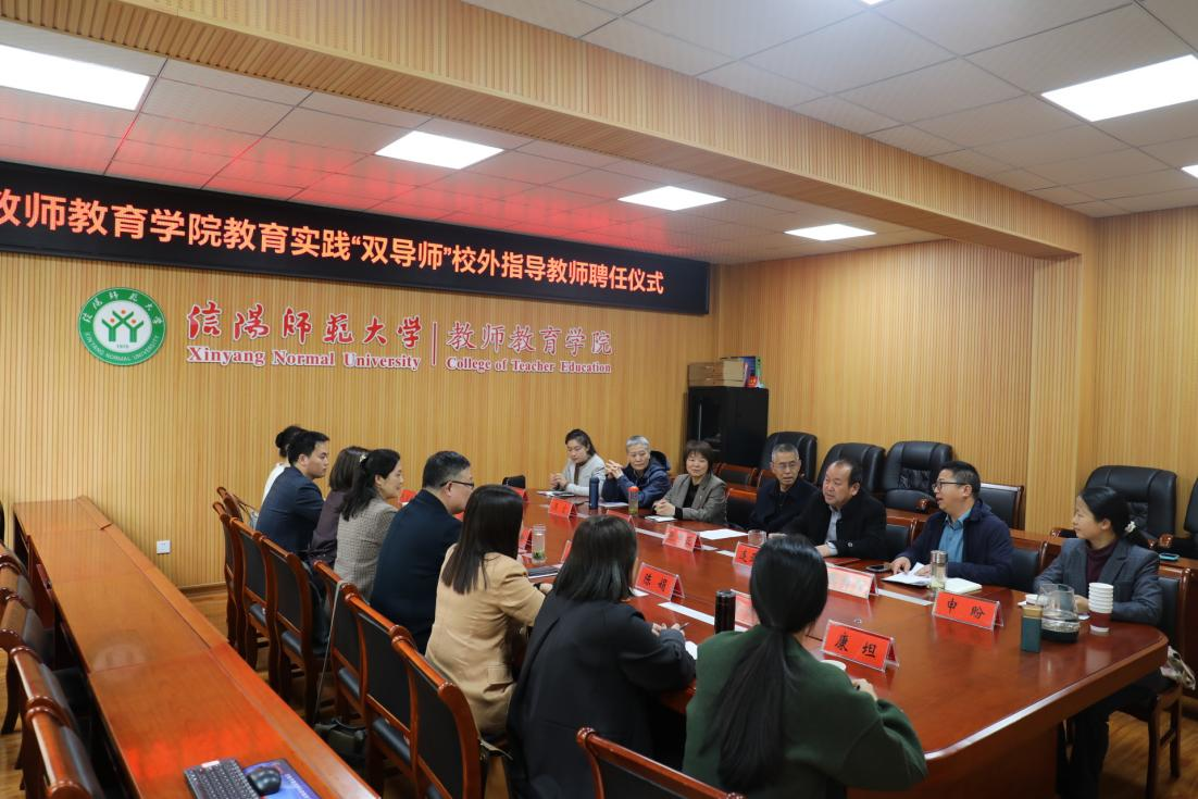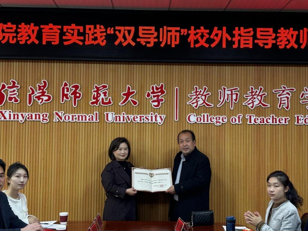 为全面贯彻教育部《普通高等学校师范类专业认证标准》的指导精神,严格落实《太阳成tyc33455cc师范生教育实践“双导师”制实施办法》的具体要求,4月12日上午,太阳成集团tyc33455于教七楼301会议室举行教育实践“双导师”制校外指导教师聘任仪式。太阳成集团tyc33455副院长张申亚、副院长连亚飞、方勤华教授和来自信阳市第十三小学、息县第一小学、息县第十一小学等名校的8名校外指导教师齐聚一堂,共同见证这一重要时刻。