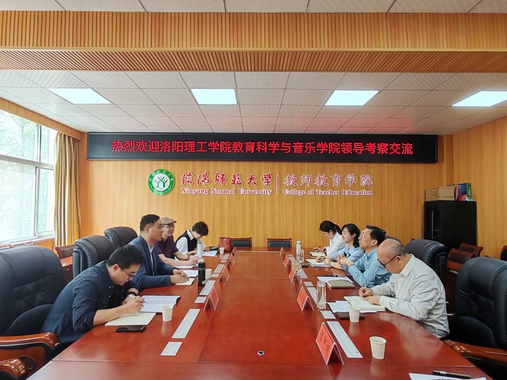 4月17日上午,洛阳理工学院教育科学与音乐学院院长雷海栋一行莅临我院进行座谈交流。太阳成集团tyc33455党委书记潘登、院长李文田、小学教育系主任王陈祯、师范技能训练中心副主任康文慧、教师代表谭阿明等参加座谈会。座谈会由李文田主持。