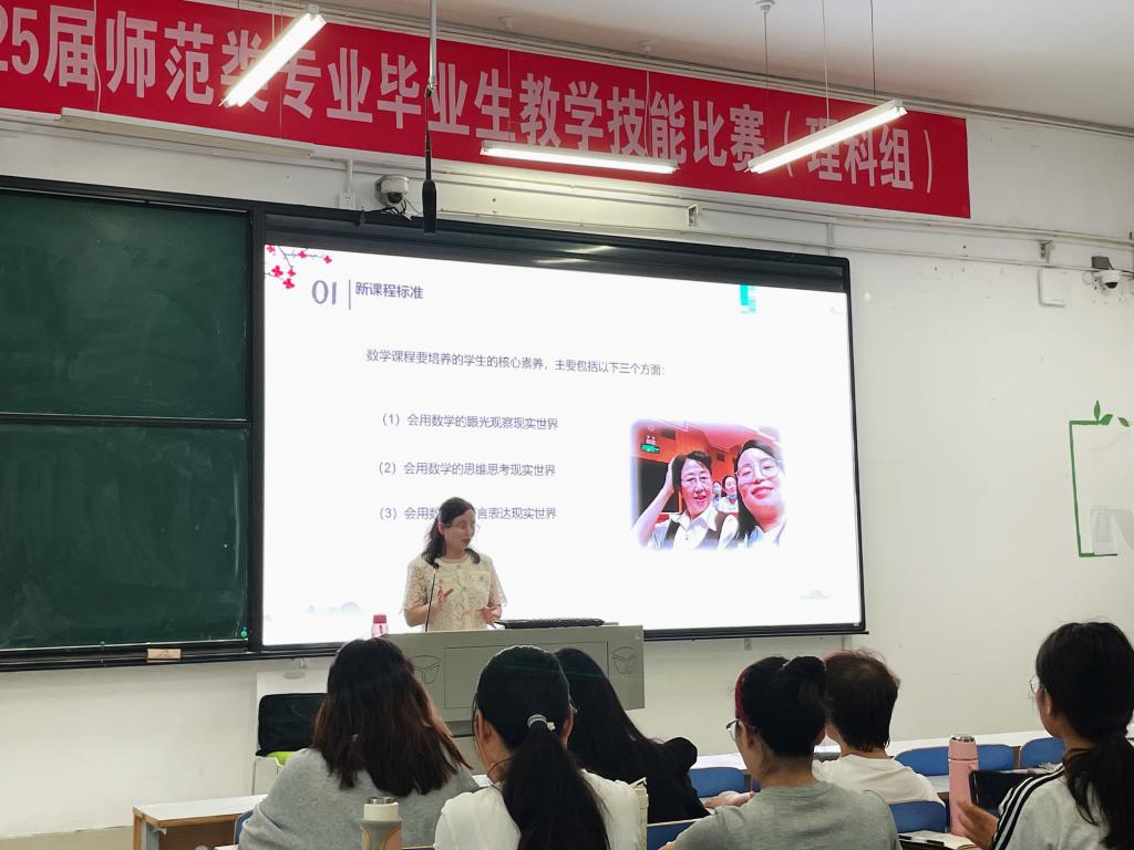 报告会上,王芬梅结合自己多年的教学经验、面试评审经历,深入浅出的分析了小学数学教师面试的各个环节和注意事项。首先,王芬梅强调一位合格教师应该以“四有好老师”的标准要求自己,做到道德高尚、热爱学生、心中有爱、眼里有光、学识扎实。然后,王老师强调必须熟悉教材,掌握四种教学模式。她指出,大家要深入学习2022版小学数学课程标准,熟悉并掌握教材内容,特别是数与代数、图形与几何、概率与统计等核心知识点。她建议同学们在面试前务必仔细阅读教材,整理好前后知识等承接关系。最后,王老师就面试时“无生试讲”和说课两方面做了详细讲解。她强调,面试时间有限,同学们必须要有自己的面试模版—私人定制面试模版。在模版上要体现“导入新、探究实、巩固练习分层次、作业布置质量高、课堂总结全面、板书设计图文并茂”等方面。王老师鼓励大家明确方向、积极主动、持之以恒、挑战自我,为基础教育高质量发展贡献力量!