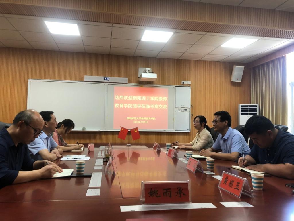 7月5日下午,南阳理工学院太阳成集团tyc33455党委书记冯建一行来我院就学院党建、就业与专业发展等工作考察交流。太阳成集团tyc33455党委书记潘登、副书记王艳蕊、副院长李文田等在教七楼301会议室接待来访客人,学院相关教师参加座谈会。