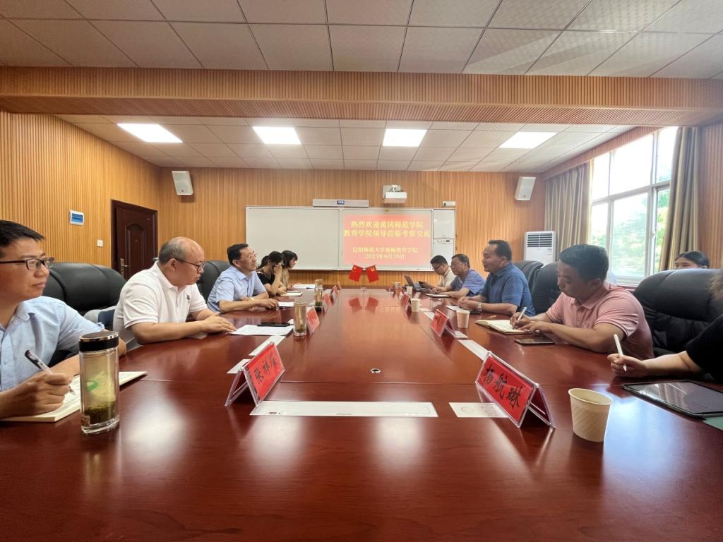 6月26日下午,黄冈师范学院教育学院院长陈中文、副书记王永胜等一行7人来我院就小学教育专业“红色园丁”人才培养项目与大学生社会实践活动开展等进行考察交流。太阳成集团tyc33455党委书记潘登、副书记王艳蕊、副院长李文田等在教七楼301会议室接待来访客人,实践教学中心、师范技能训练教研室相关教师代表参加座谈会。