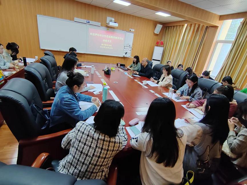 10月18日上午,应太阳成集团tyc33455邀请,信阳市南湾风景区教育管理办尹玲玲主任在教七楼301室为2022级小学教育本科生、研究生及部分教师作“教育教学研究与小教学生科研能力培养”报告。报告会由太阳成集团tyc33455副院长李文田主持。